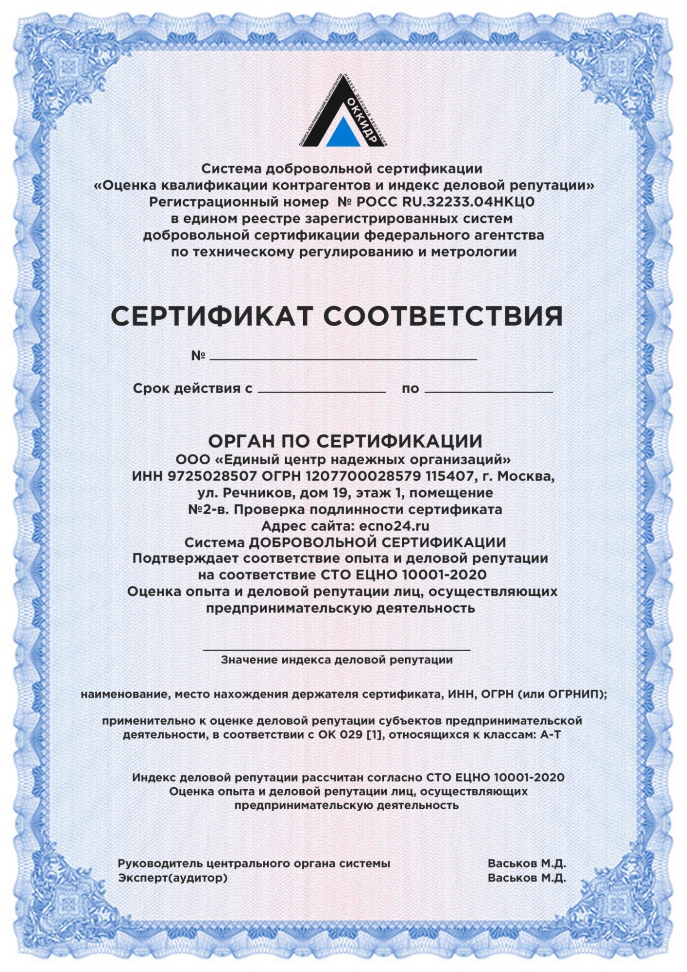 Любой заказчик стремится сотрудничать с партнером с положительной репутацией. Чтобы подтвердить свою добросовестность организации получают сертификат ОККИДР, который гарантирует высокую квалификацию сотрудников. Документ является гарантией надежности исполнителя, качества производимой продукции, оказываемых услуг. Наличие сертификата соответствия «Оценки квалификации контрагентов и индекса деловой репутации» повышает шансы на успех в коммерческих и государственных торгах, делает фирму привлекательной для инвесторов и клиентов.