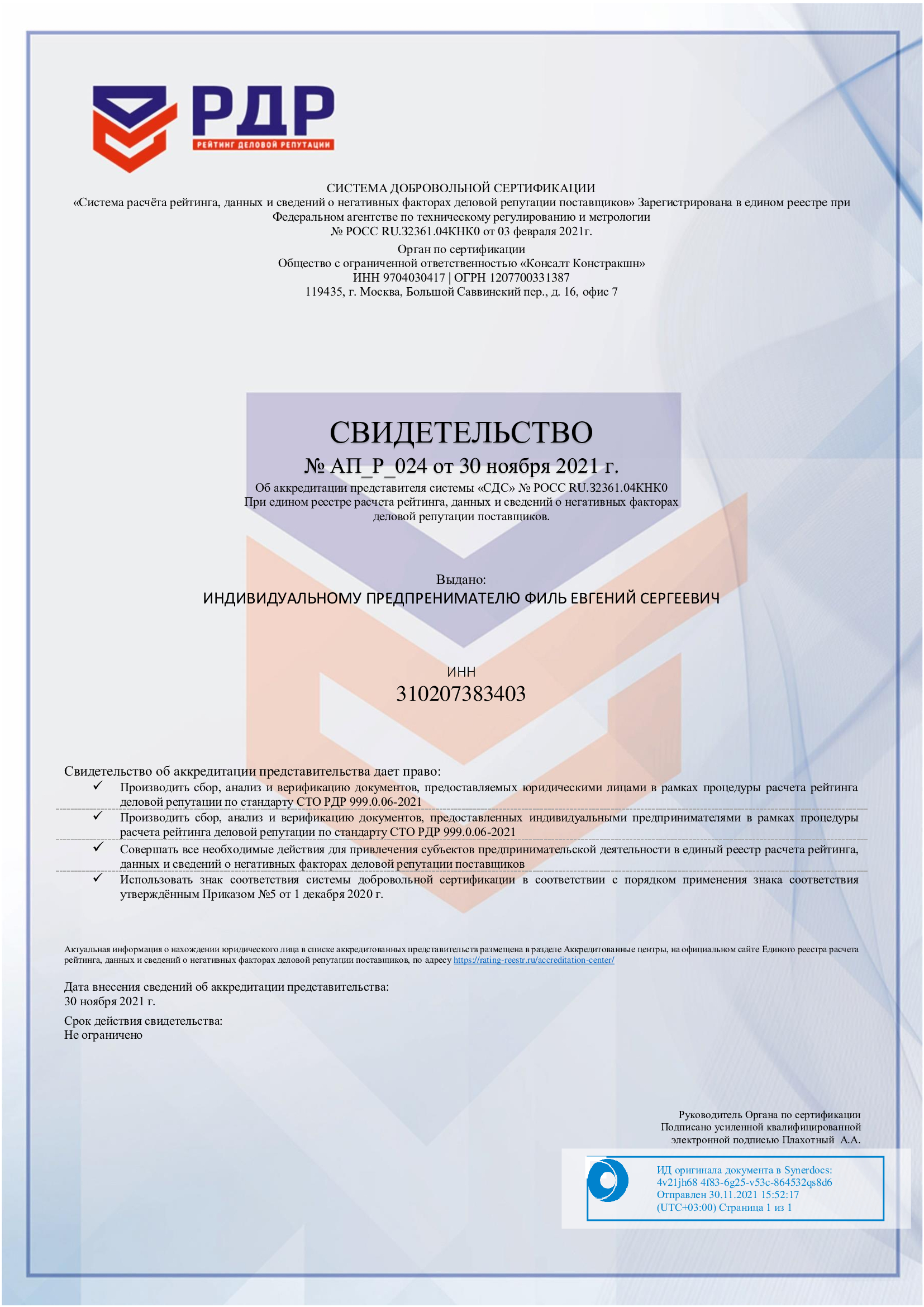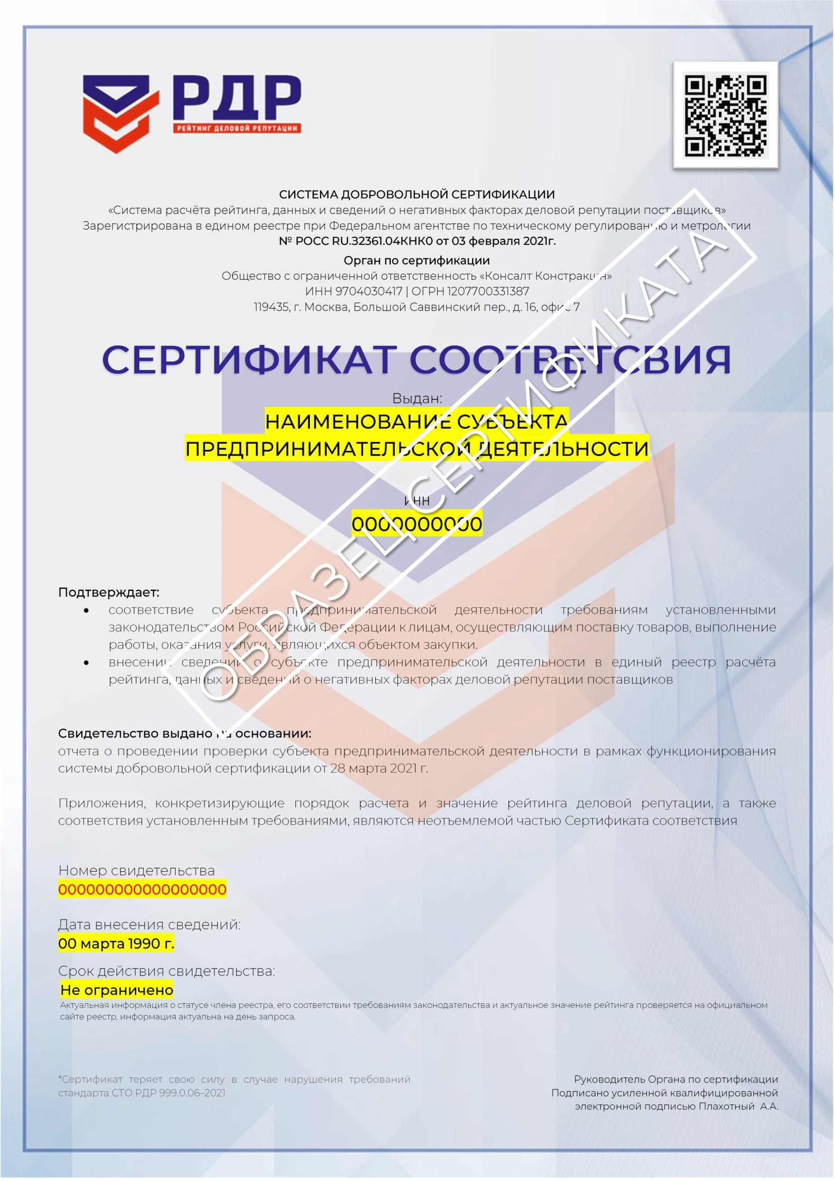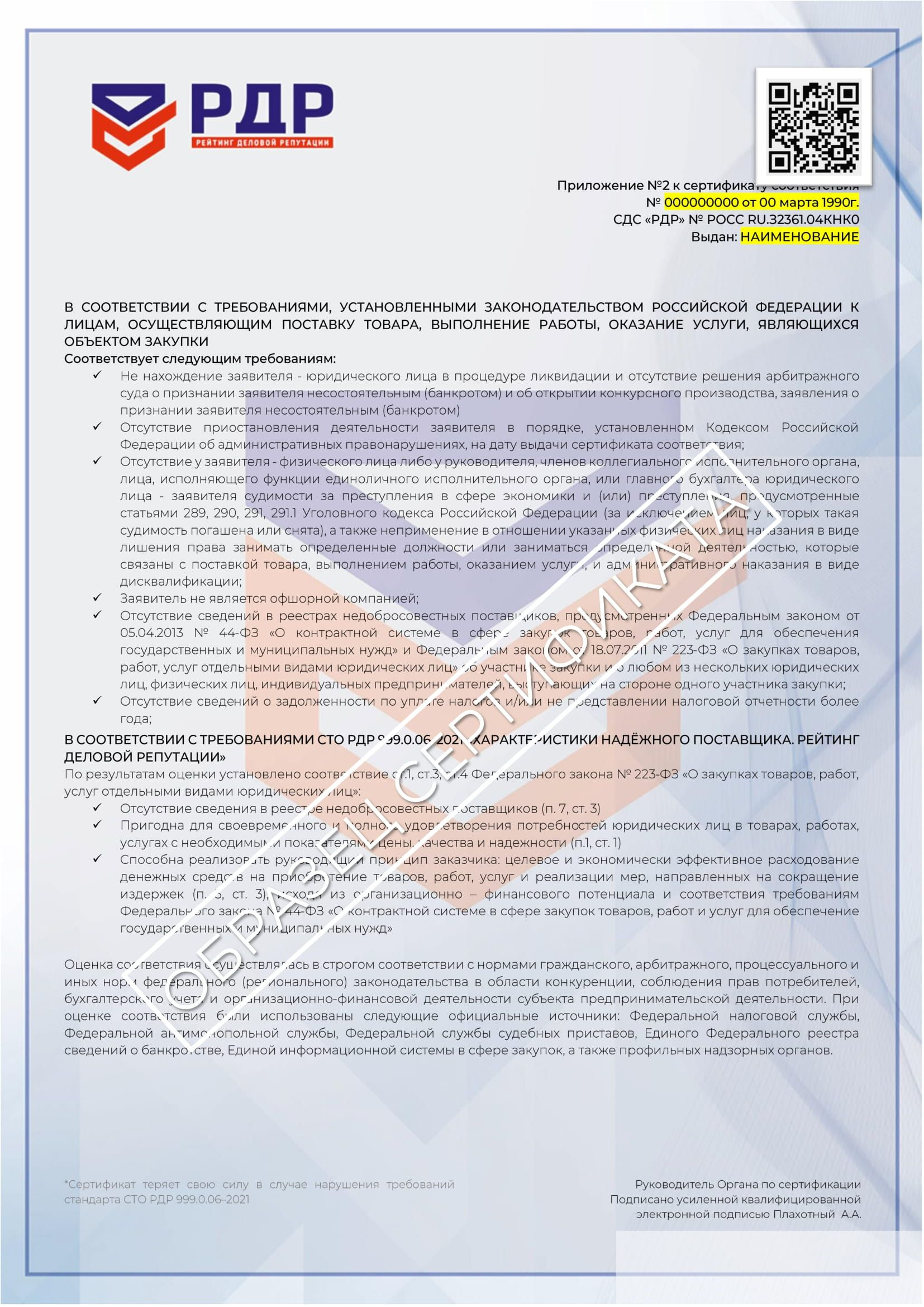 Стандарт СТО РДР 999.0.06-2021 - Характеристики надежности поставщика. Расчет рейтинга