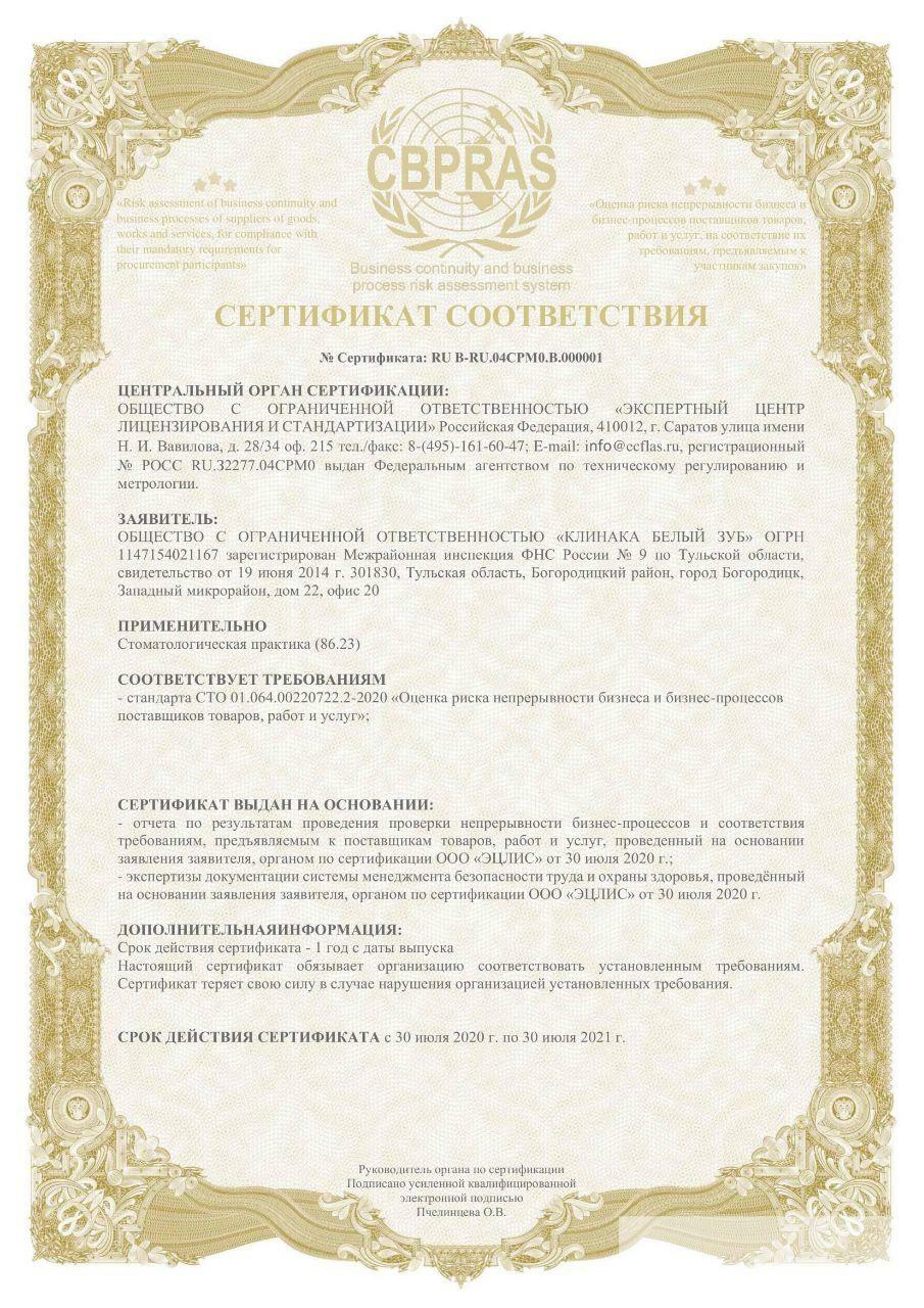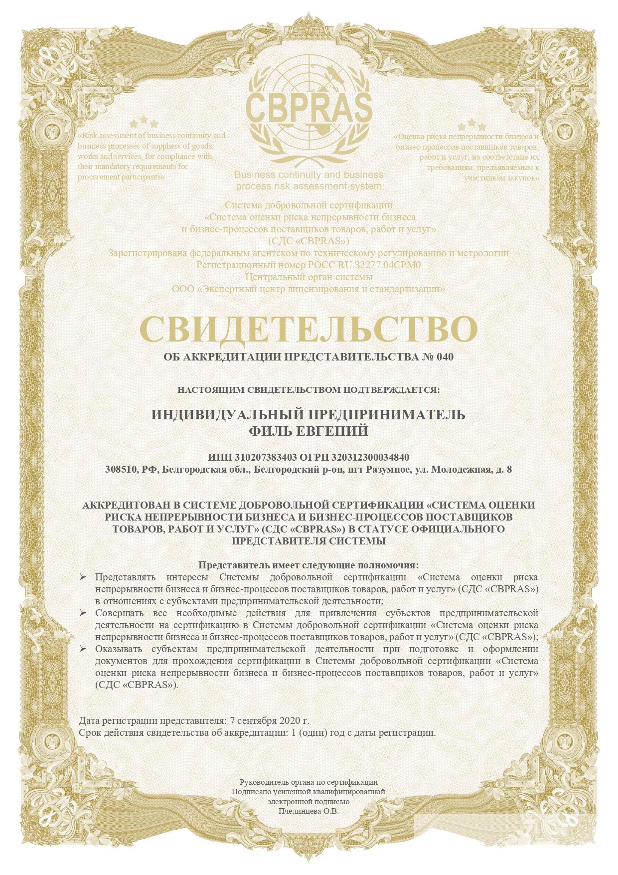 Оформление сертификат СТО 01.064.00220722.2-2020 «Оценка риска непрерывности бизнеса» по PRAS! За 24 часа!